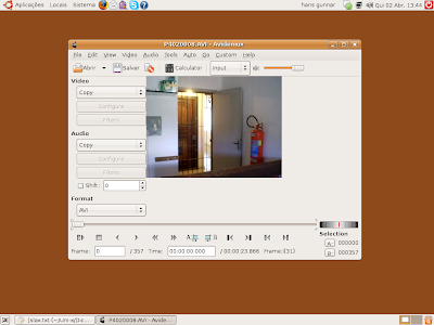 1º – Abrir o Avidemux em Aplicações no Menu;