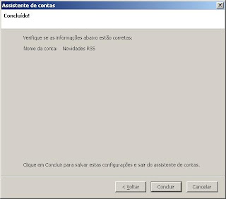 – Vai aparecer a seguinte tela, selecione Conta de RSS.